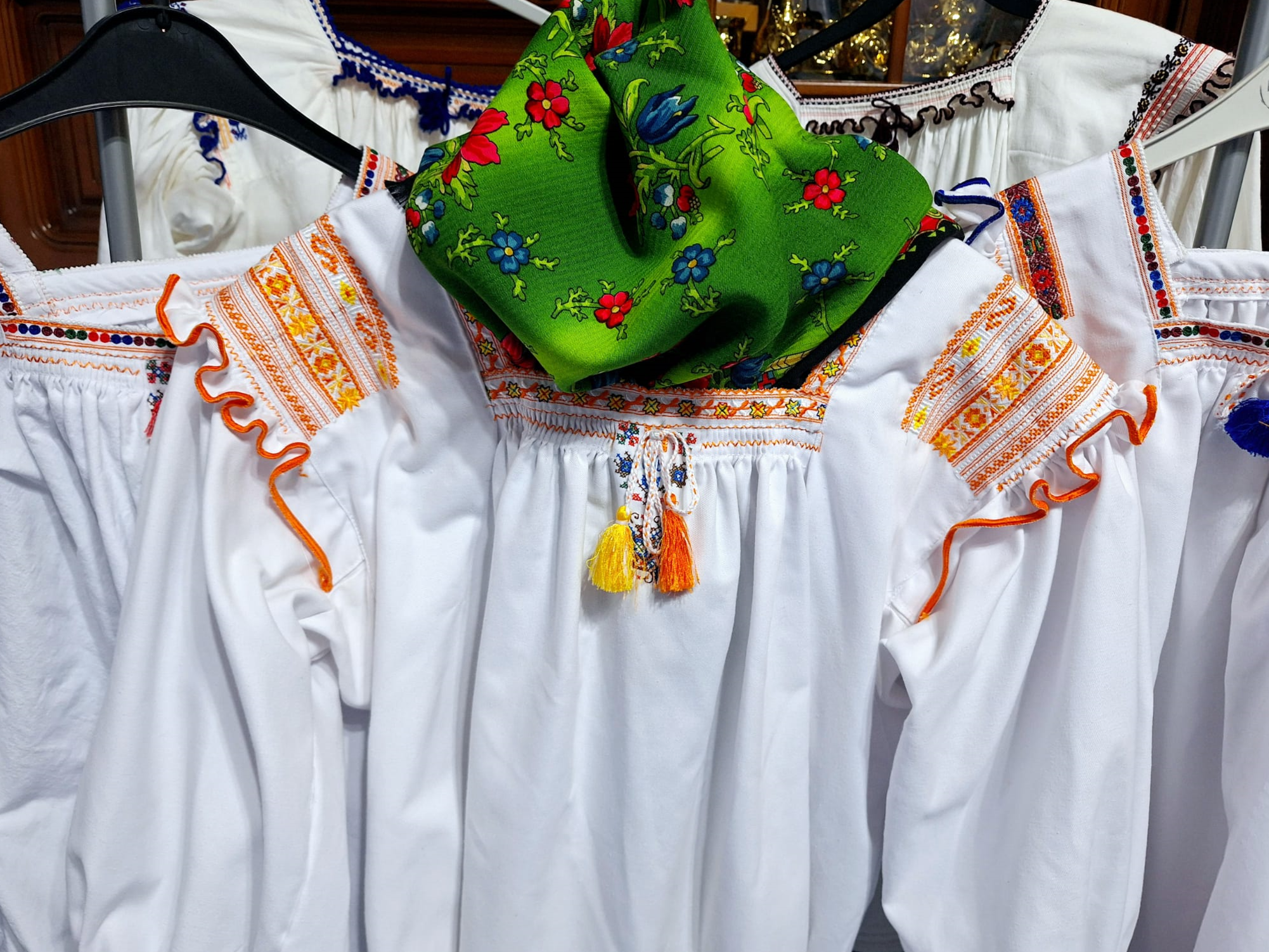 Aceste costume sunt compuse adesea din mai multe elemente, precum camasi brodate manual, fuste sau pantaloni ampli, veste ornamentate si brauri colorate. Broderiile sunt elaborate si includ motive specifice fiecarei regiuni, reflectand istoria si traditiile locale. Materialele folosite sunt in general naturale, cum ar fi lana, bumbacul si inul, iar culorile sunt vibrante si diverse, adesea reflectand elemente naturale si simboluri populare. Portul popular este purtat in special la sarbatori, evenimente culturale si religioase, fiind un simbol al identitatii si mandriei nationale.